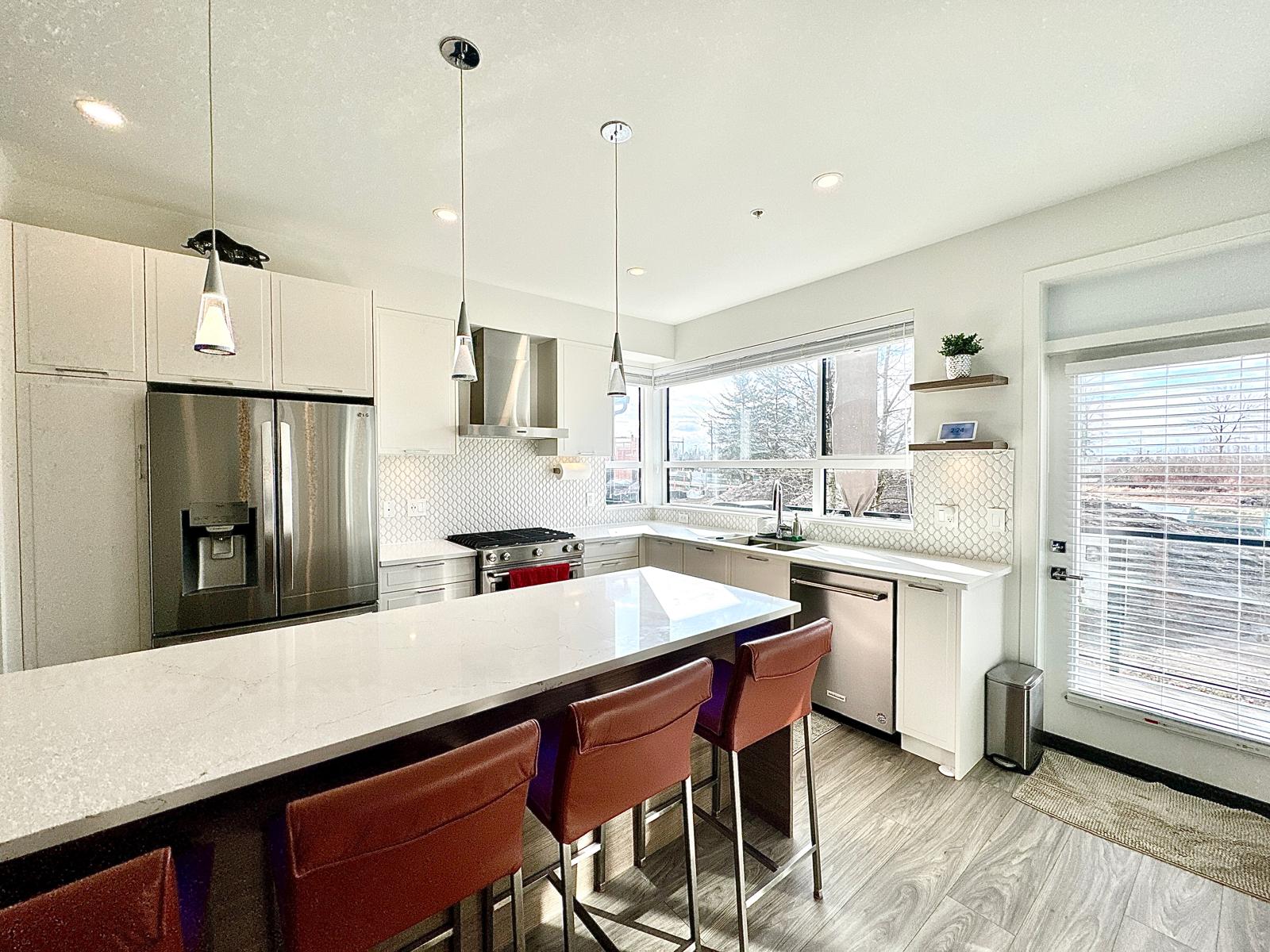 The open concept main floor is perfect for everyday life and entertaining. Large windows bring in tons of natural light. The gourmet kitchen features: