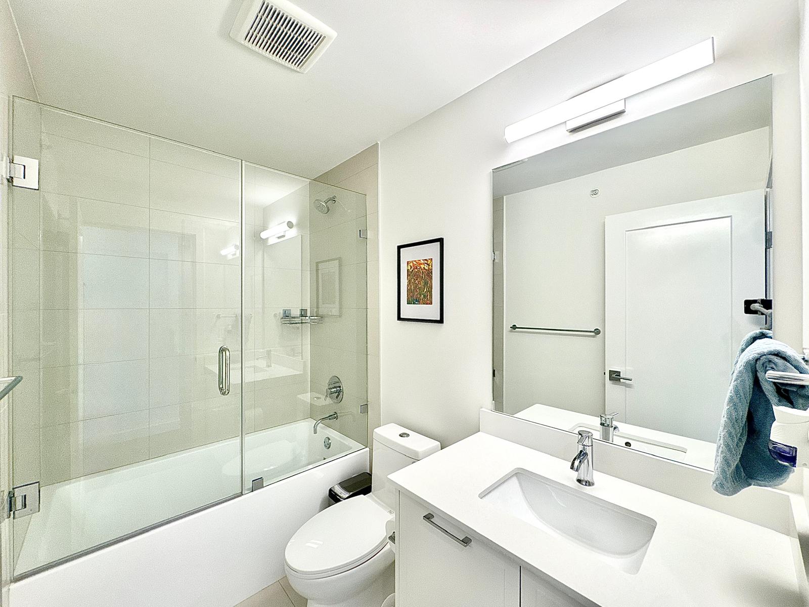 The double garage features a durable ceramic floor finish for clean and practical storage. Plus, you have a third reserved parking spot just steps from your door.